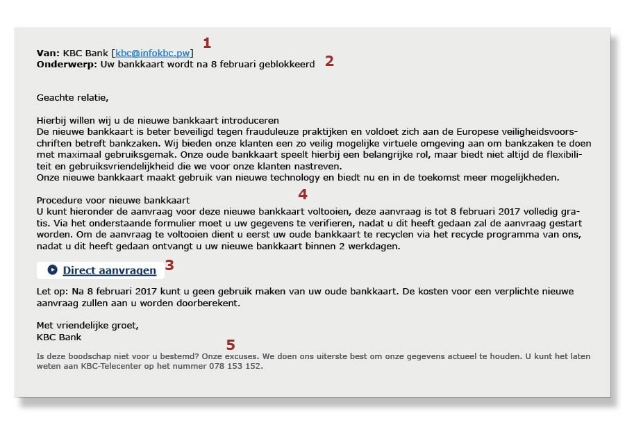 - De inhoud moet geloofwaardig zijn. Een bank zal je nooit vragen om betalingsgegevens via e-mail door te sturen ...