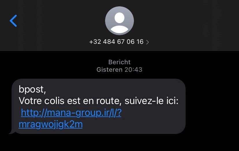 De sms nodigt je uit om je pakketje te volgen via een vreemde link. Klik niet!