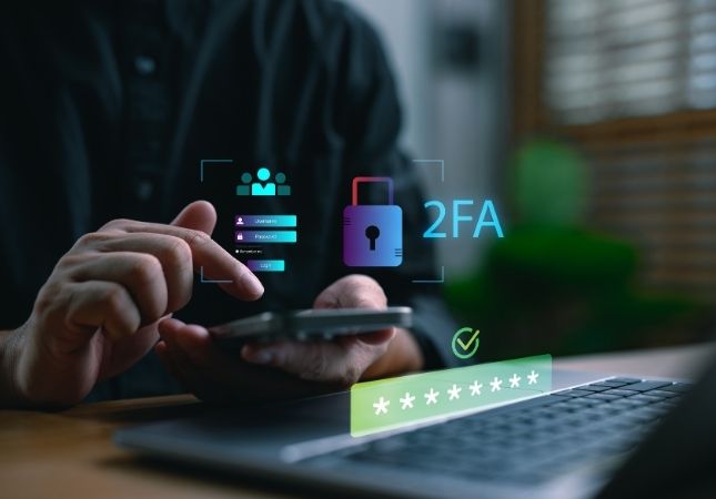 Tweestapsverificatie (2FA) voegt een extra beveiligingslaag toe aan je accounts. Naast je wachtwoord is een tweede stap nodig, zoals een code via een app of sms. Zelfs als een wachtwoord uitlekt, blijft het account zo beter beschermd.