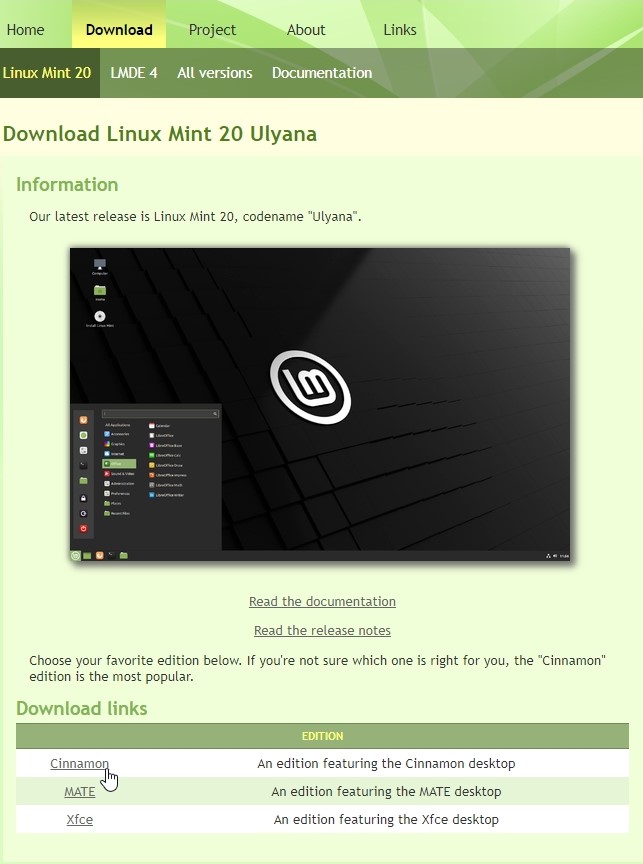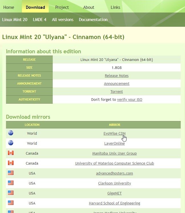 - Surf naar de website van Linux Mint om het ISO-beeldbestand te downloaden