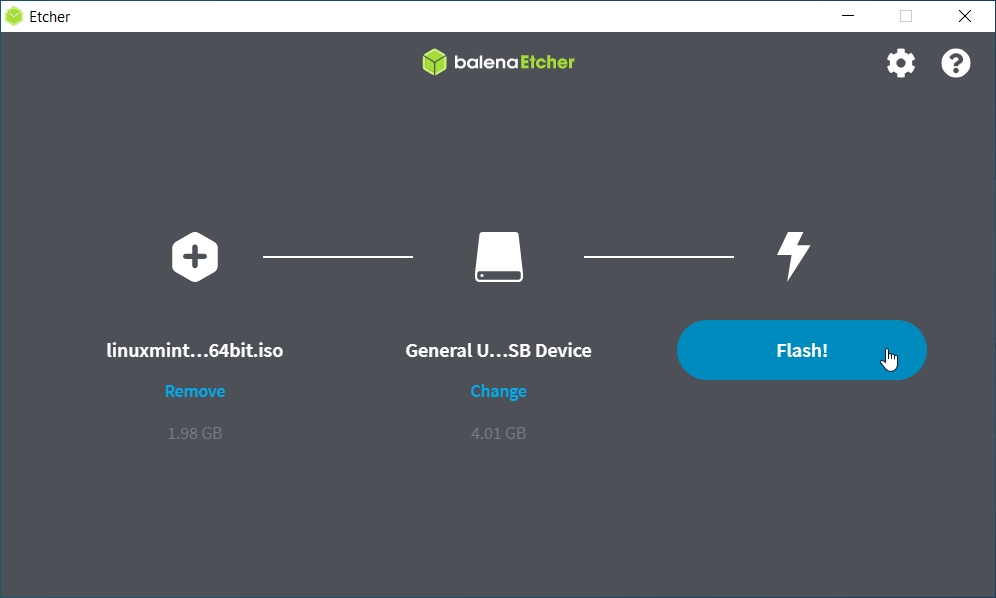 - Klik op Flash from file en selecteer het gedownloade ISO-bestand linuxmint-20-cinnamon-64bit.iso