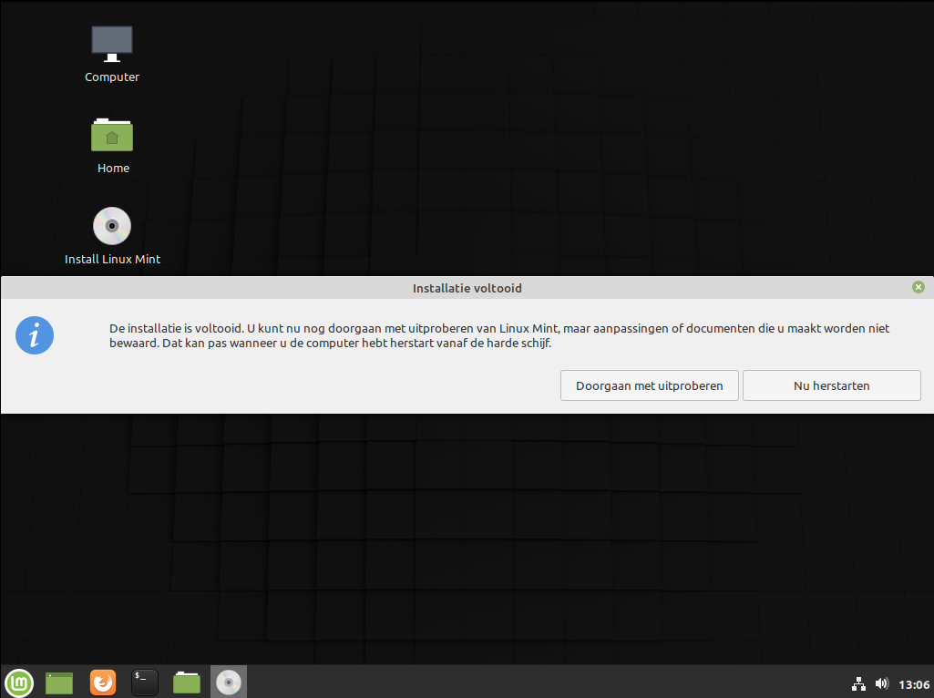 - Dubbelklik op het Install Linux Mint pictogram op het bureaublad.