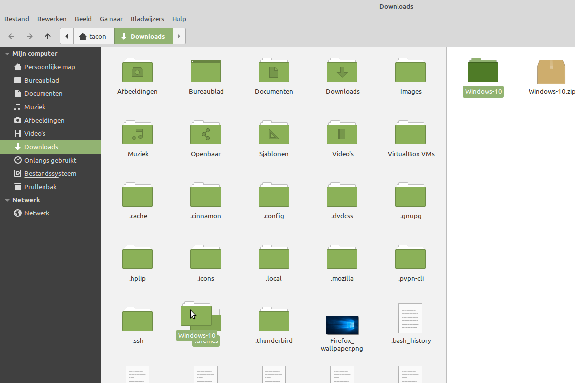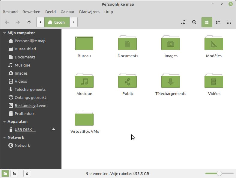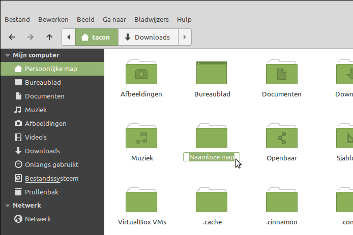 Zoals de Verkenner bij Windows staat Nemo bij Linux Mint in voor het beheer van al je documenten, foto’s enz. De bestandsbeheerder is toegankelijk via het bureaublad, de werkbalk of het Menu via het pictogram van een map