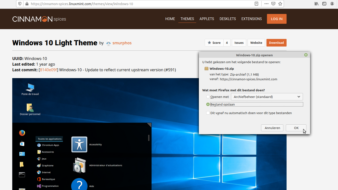 Op het internet kun je verschillende gratis packs downloaden om Linux te restylen. Wij hebben deze twee gekozen, die allebei compatibel zijn met het erg populaire Linux Mint Cinnamon. Je kunt deze packs in Linux downloaden via de browser Firefox: