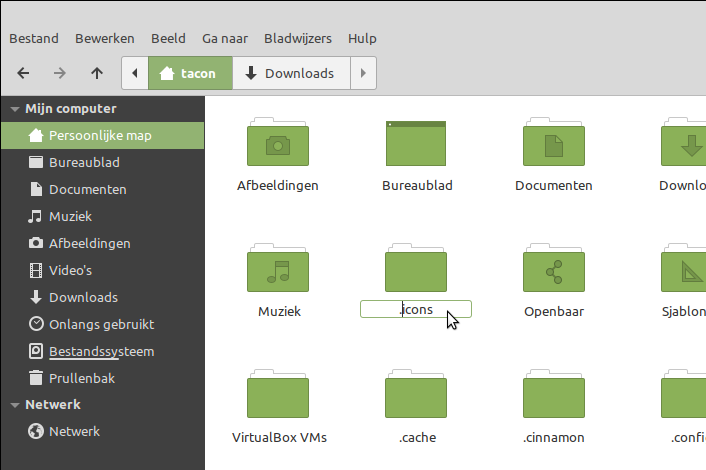 - Herhaal de voorgaande stap om een map ".icons" aan te maken.