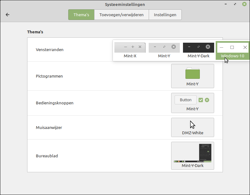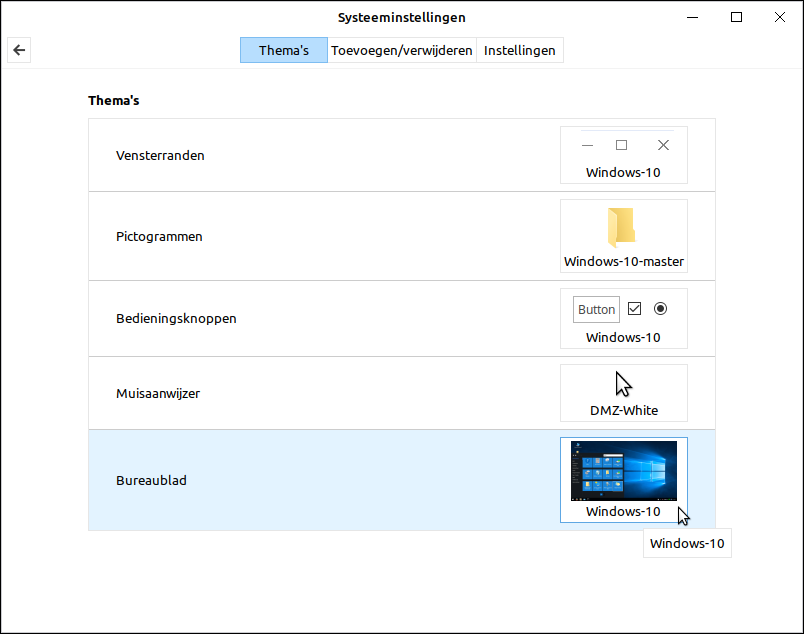 - Klik rechts naast de lijn Vensterranden en kies Windows 10.