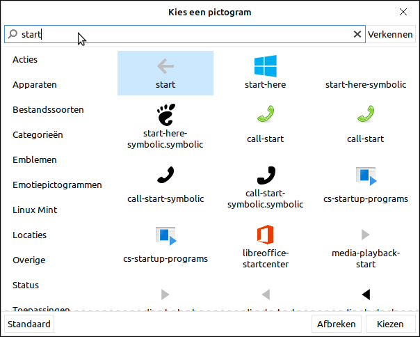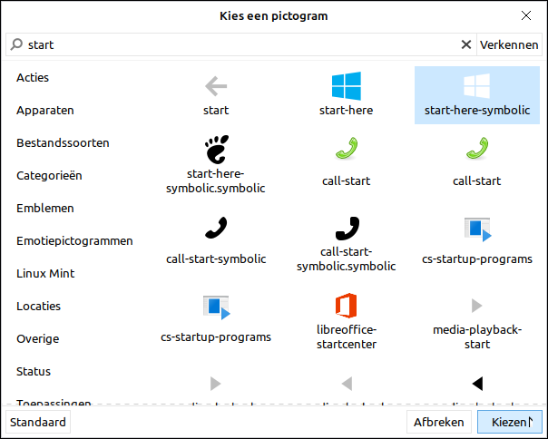 - Selecteer start-here-symbolic en klik op Kiezen.