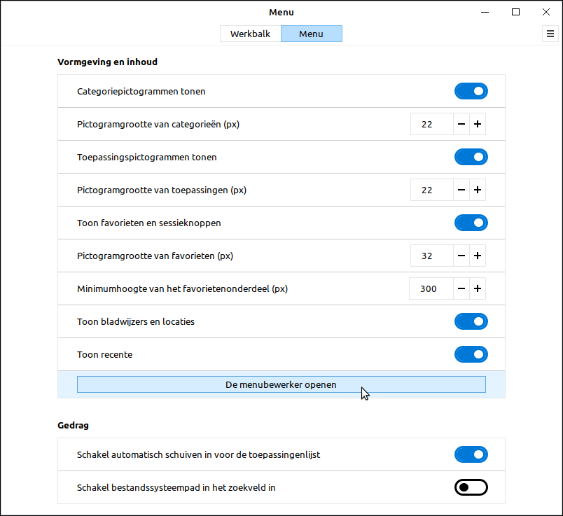 - Klik bovenaan op de tab Menu en dan op De menubewerker openen.
