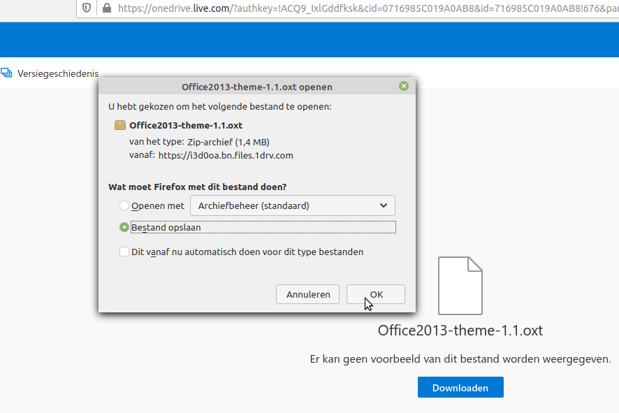 - Klik op Downloaden, kies Bestand opslaan en dan OK.