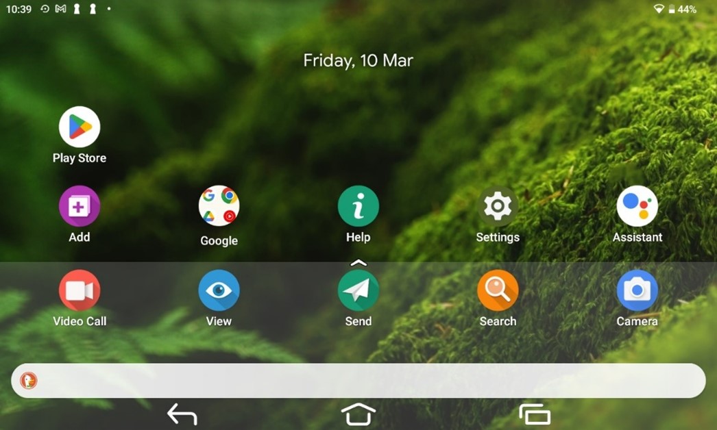 De standaard home-app is die van Doro, maar je kunt hem in tegenstelling tot de rest wel personaliseren. De configuratie ervan is niet instinctief, omdat de apps op een weinig logische manier zijn gegroepeerd.