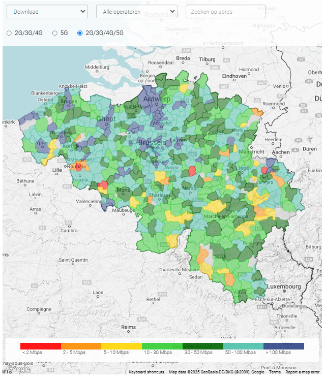 Die dekkingsgraad is overigens verschillend tussen de drie netwerkoperatoren, afhankelijk van waar hun antenne-parken zijn geplaatst en meer of minder talrijk aanwezig zijn. Via onze interactieve kaart kan je de dekkingsgraad vergelijken op basis van de testervaringen van de verschillende gebruikers van onze applicatie.