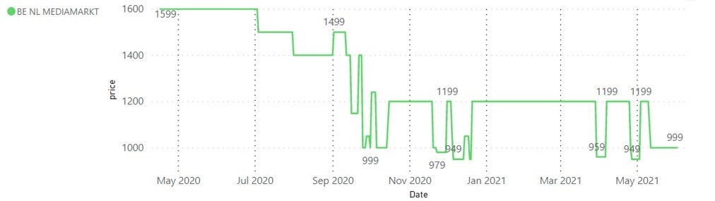 MediaMarkt biedt deze tv aan voor een promoprijs van € 999. Deze prijs verscheen voor het eerst bij dezelfde verkoper op 26 september 2020, en is herhaaldelijk gedaald tot € 949. De promo is dus nauwelijks interessant, aangezien deze tv vaak onder de € 950 te vinden is.