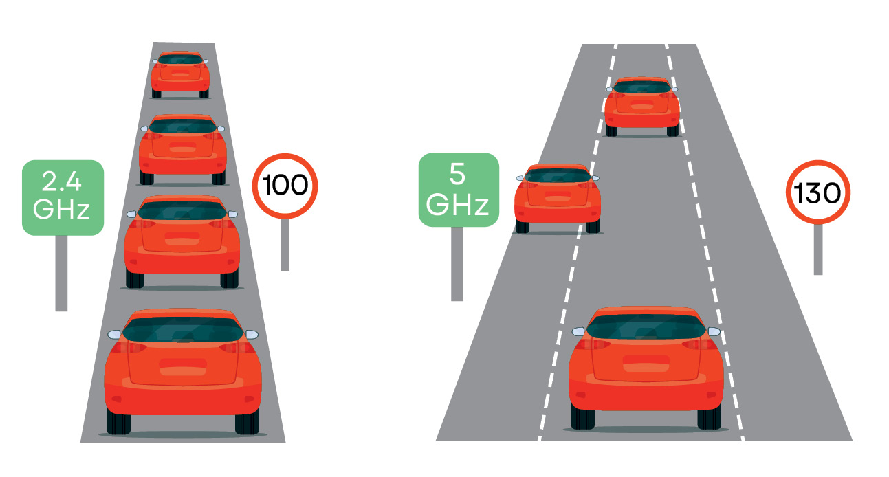 - 2,4 GHz: groot bereik, lagere snelheid, ideaal voor slimme apparaten;
