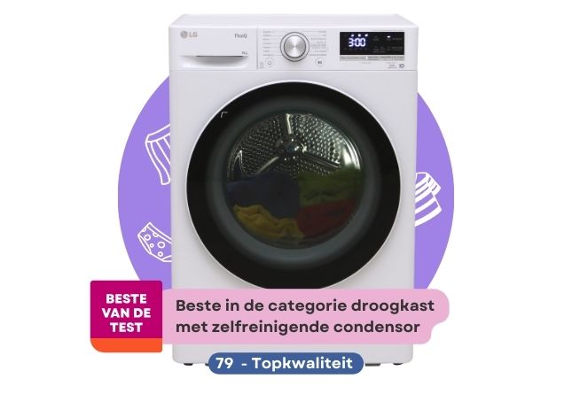 Met de hoogste eindscore van de selectie is deze LG droogkast onlangs bestempeld als “beste droogkast met zelfreinigende condensor”.