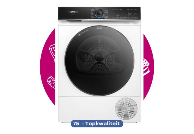 Deze twee zeer vergelijkbare Siemens modellen kregen een score van 75/100. We hebben een geluidsniveau van 53,0 dB gemeten. Ze hebben een capaciteit van 3,5 kg voor synthetische stoffen.