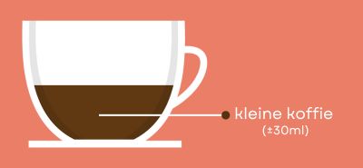 Een espresso is een kleine koffie, doorgaans 30 ml, met een krachtige smaak. Heeft zo goed als altijd een standaard knop op je koffiemachine. De maalgraad van je bonen moet niet te fijn en niet te grof zijn.