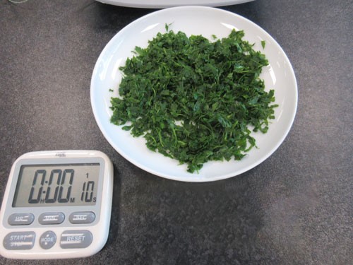 Het hakken van kruiden en uien is niet bepaald het sterkste punt van dit nieuwe toestel. De Thermomix TM5 is vooral beter geschikt om kruiden te hakken;