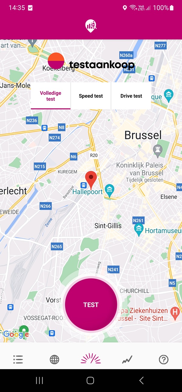 Met de Drive-test kun je een reeks tests uitvoeren binnen een bepaalde tijdsperiode. Je kunt metingen uitvoeren voor een specifiek traject, zoals een treinreis van huis naar werk bijvoorbeeld.