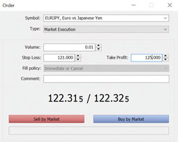 Wat wil dat allemaal zeggen? Neem die laatste tip bijvoorbeeld. Koop valutapaar EURJPY rond een prijs van 122,6. Voer daarbij onmiddellijk een bodemprijs in van 121,000 waardoor uw verlies in het slechtste geval beperkt is tot het verschil van uw aankoopprijs en die 121. Dat heet in het vakjargon een stop loss (SL). Neem ook winst als de koers 125,000 bereikt. Dat is de take profit (TP).