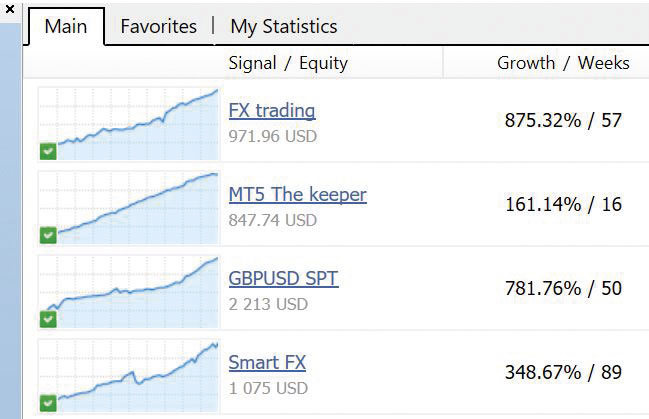 Voorbeelden van copytradesignalen in MetaTrader