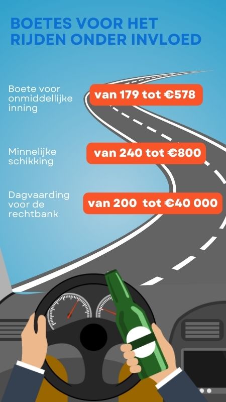 Boetes variëren afhankelijk van het alcoholpromillage, met de mogelijkheid van onmiddellijke inning, schikking of een oproep voor de rechtbank.