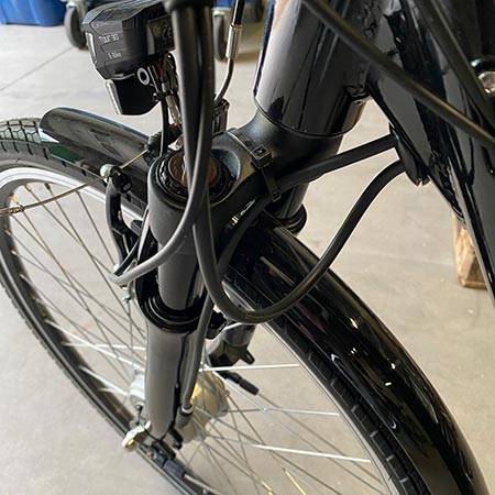 Wat ons bij de Colorado Arrow zorgen baart, zijn alle kabels die niet zijn weggewerkt. Dat zijn kwetsbare onderdelen, zeker bij een elektrische fiets. Bij duurdere fietsen zijn ze vaak netjes weggewerkt in het kader, maar dat is hier helemaal niet het geval.