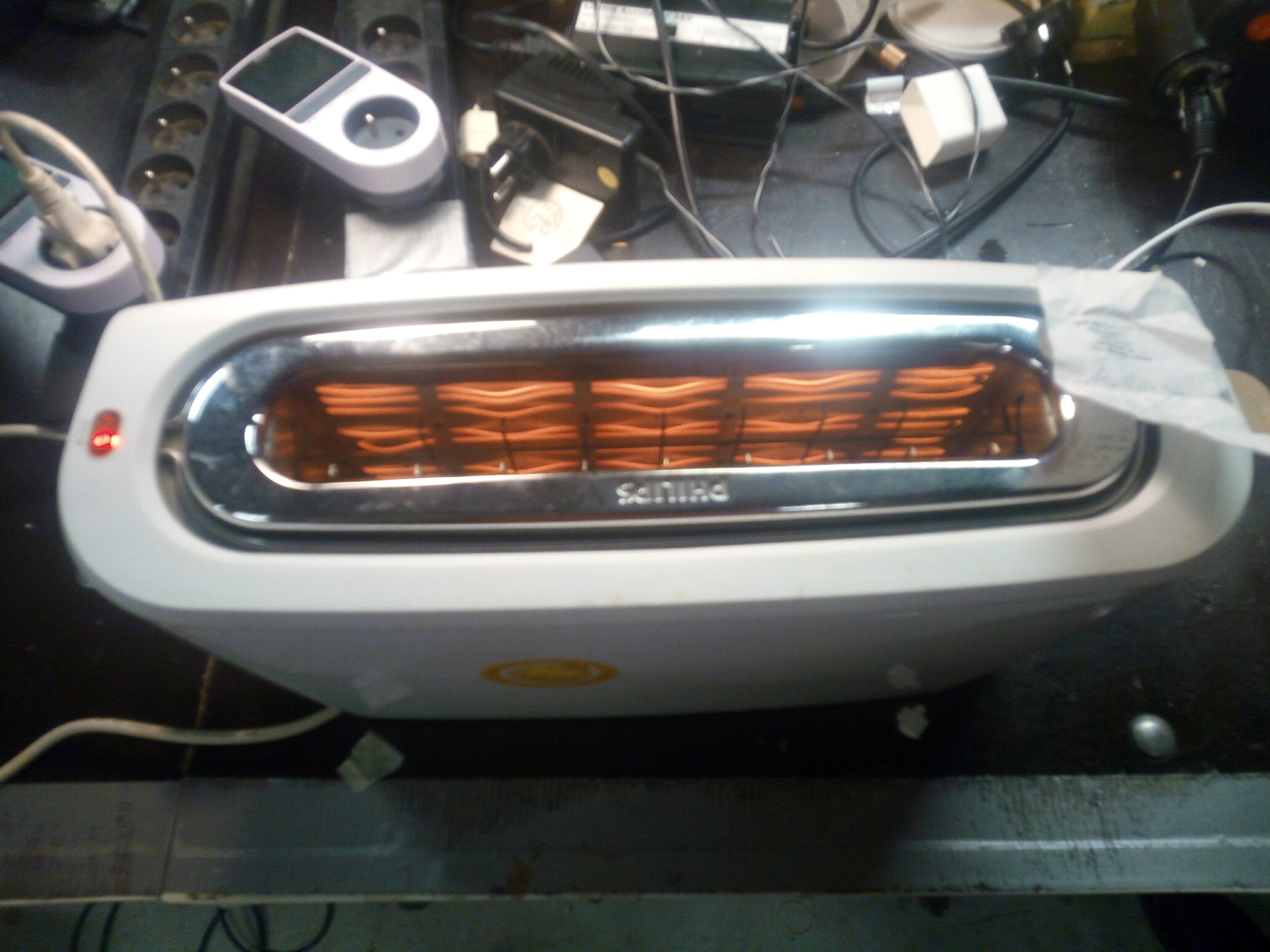 De elektromagneet houdt de broodrooster een tijdje aan de gang. Soms stopt het met werken. Helaas is het een zeer gecompliceerd onderdeel om te repareren of te vervangen.