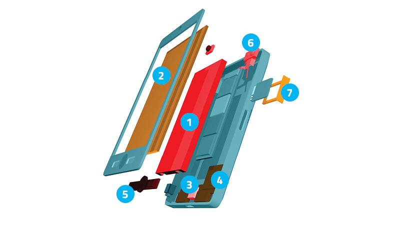 Een ander belangrijk onderdeel van je telefoon is het scherm (2), dat de verschillende door de processor berekende gegevens weergeeft. Een scherm heeft normaal een lange levensduur, maar soms kunnen er kleine witte of zwarte vlekken verschijnen die de leesbaarheid nadelig beïnvloeden. Wees voorzichtig met schokken, want het scherm is een van de meest broze onderdelen en kan makkelijk breken of barsten als je jouw smartphone laat vallen.