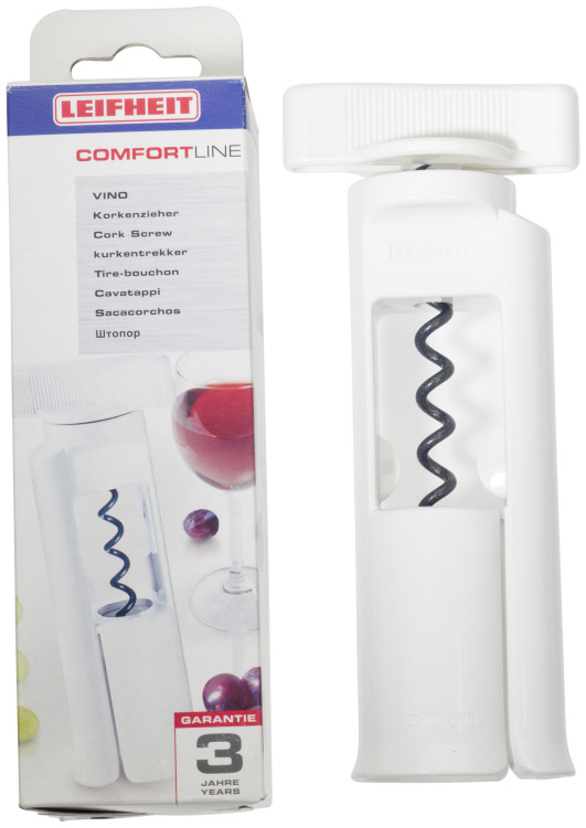 Een eenvoudig model dat de klus snel en simpel klaart. De kurkentrekker is bovendien verkrijgbaar in verschillende kleurtjes. Dit product overtuigde vooral doordat het goed in de hand ligt en de kurk makkelijk uit de koker gehaald kan worden: "Deze kurkentrekker is eenvoudig in gebruik door het grote handvat, hij past perfect op een fles, je kan hem niet schuin trekken en de kurk is eenvoudig te verwijderen! 10/10", oordeelde Vicky uit Heusden.