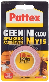 - Pattex Geen Schroeven Of Spijkers werkt het beste op gekalkte muren, ook al hecht de tape op alle ondergronden. Maar deze is het moeilijkste te verwijderen – van andere dan gekalkte muren als u op een bepaalde dag het voorwerp terug van de muur wil halen.