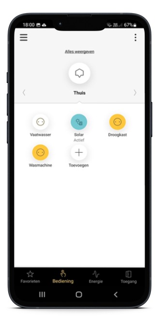 Met de “solar mode” van het systeem kun je zelfs instellen welke apparaten automatisch moeten aanschakelen zodra je zonnepanelen een bepaalde hoeveelheid stroom op het net zetten. Zo starten die toestellen op het juiste moment, zonder dat je zelf iets hoeft te doen.