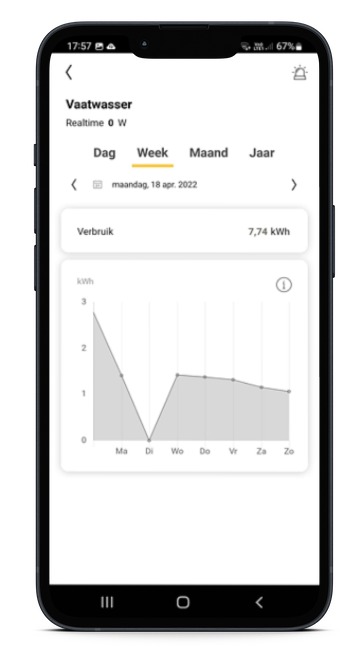 Via de slimme stekkers kun je het verbruik van specifieke toestellen opvolgen en stroomvreters identificeren zoals een vaatwasser.