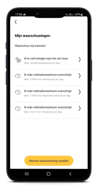 Je kunt zelfs instellen om je te verwittigen wanneer een toestel een bepaald verbruiksniveau of piekvermogen overschrijdt.
