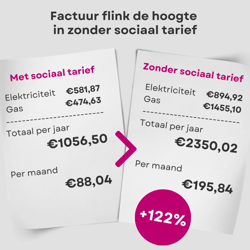 Dat deze groep van mensen zich terug op de reguliere energiemarkt moet begeven, lijkt ons een slecht idee. Het sociaal tarief helpt hen momenteel om hun uitgaven voor energie onder controle te houden. Als zij terug een gewoon contract moeten afsluiten, zal hun factuur mogelijk meer dan verdubbelen, zoals we hieronder aangeven.