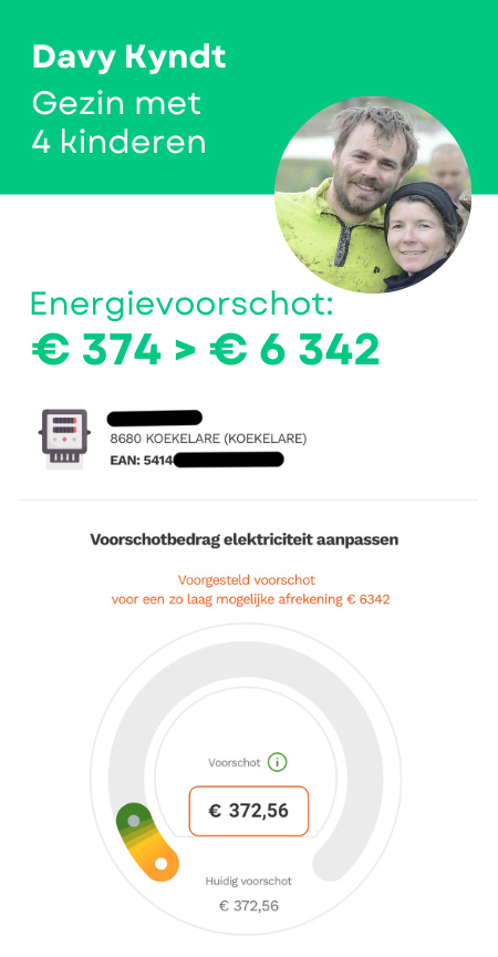 Het huishouden van Davy bestaat uit zes mensen: twee volwassenen en vier kinderen tussen 2 en 10 jaar. Hun factuur ging van 373 euro naar 6342 euro.