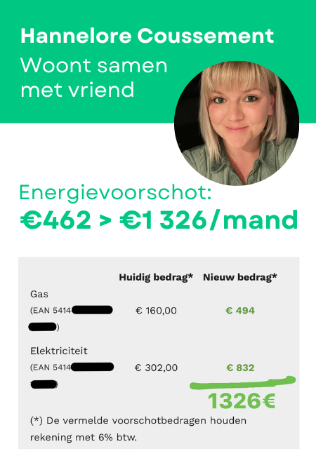 Hannelore en haar vriend zagen hun energievoorschot van 462 euro naar 1326 euro schieten.