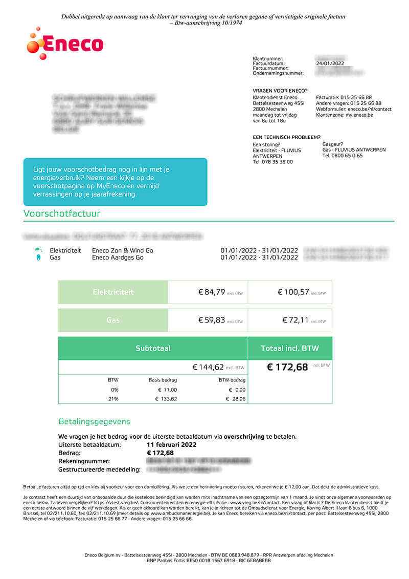 Factuur 4: Frank uit Antwerpen, vast tarief (Eneco) dat binnenkort afloopt