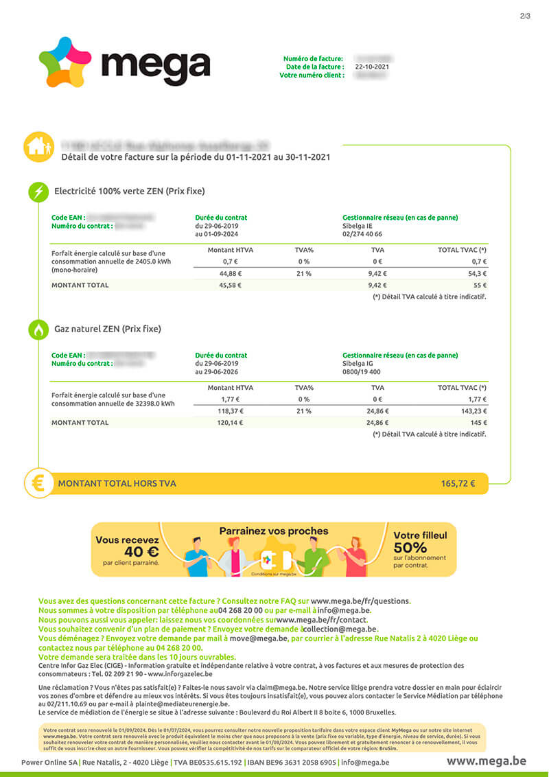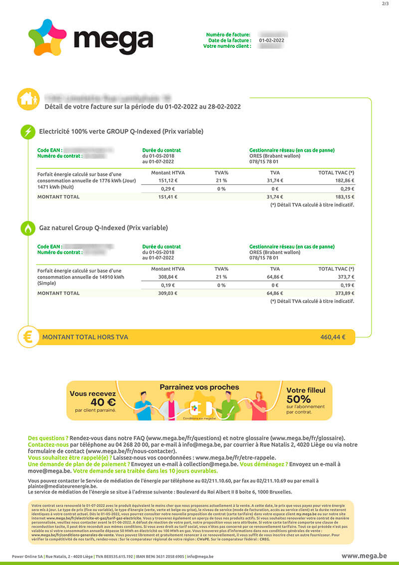 Factuur 3: Christian uit Ottignies, variabel tarief (Mega)