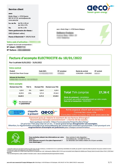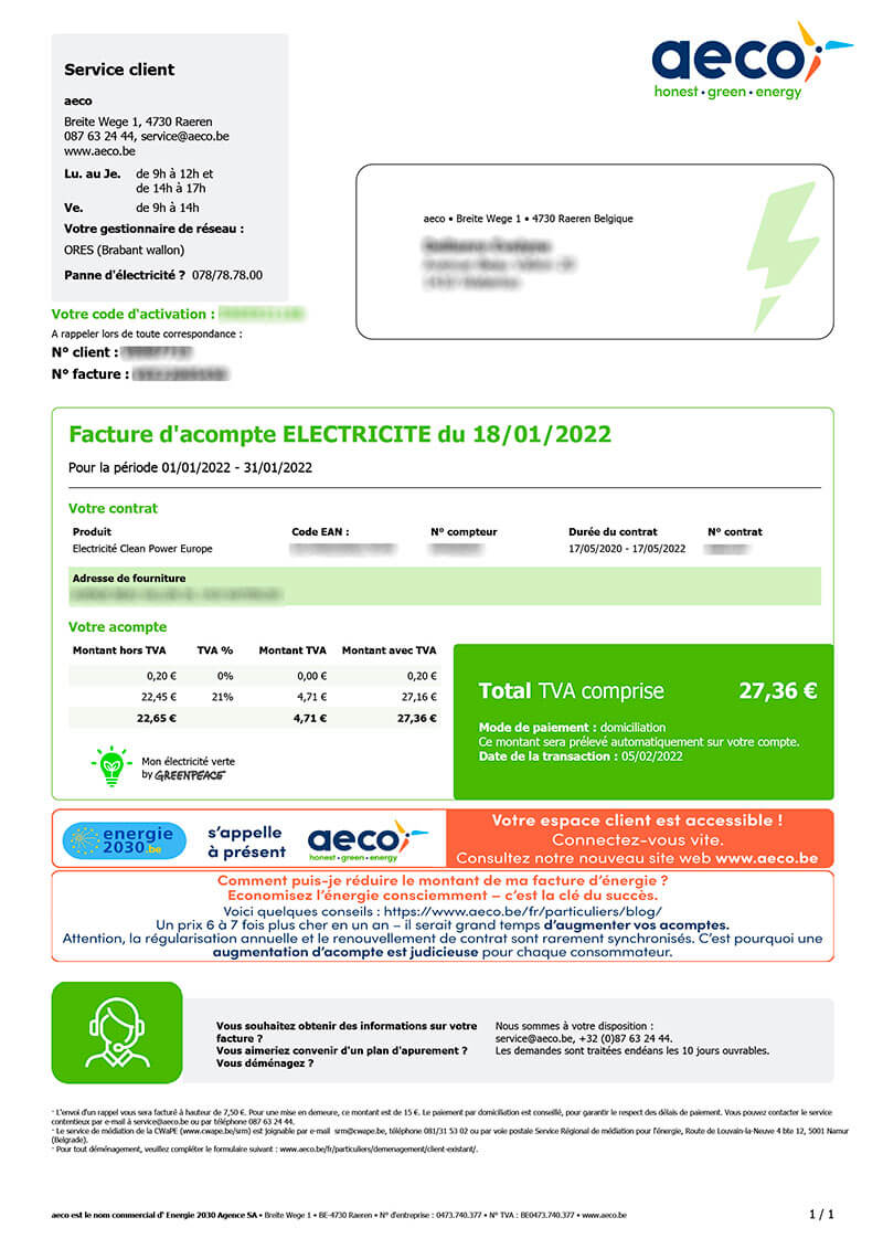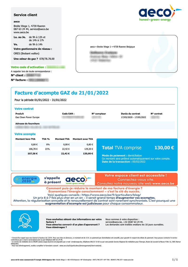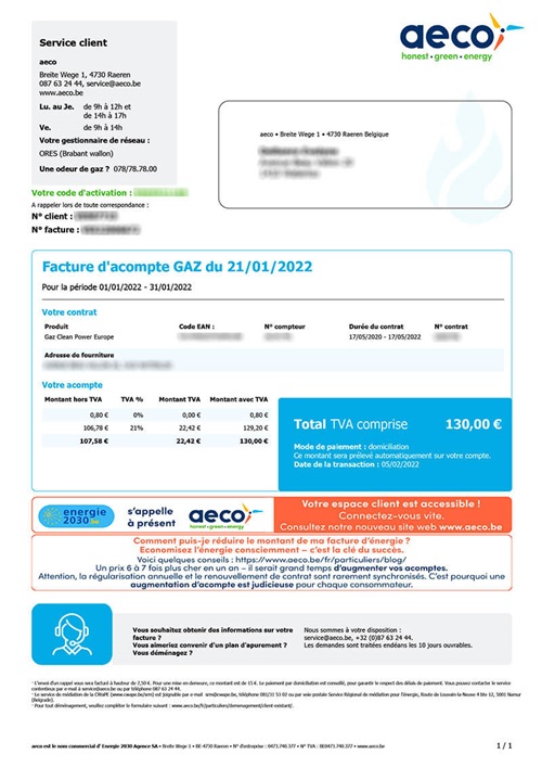 - Evelyne is klant bij energiecoöperatie Aeco waar ze een variabel tarief heeft. Door haar lage elektriciteitsverbruik betaalt ze maandelijks slechts 27 euro. Voor gas betaalde ze tot over een paar maand 62 euro per maand. Haar leverancier stelde echter in oktober een verhoging voor naar 192 euro. Evelyne paste dat voorstel aan naar 130 euro, in de wetenschap dat ze wellicht zal moeten bijbetalen als de afrekening in de bus valt.
