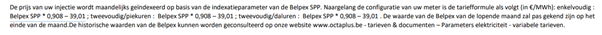 Enkele voorbeelden van indexatieformules in de kleine lettertjes van de tariefkaarten van Octa+ en Mega: