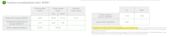 Bovendien is de aangeduide terugleververgoeding in de tariefkaart bij sommige leveranciers berekend als een jaarschatting terwijl andere enkel de meest recente maand- of kwartaalprijs vermelden. Dat maakt vergelijken moeilijk voor consumenten. In het ideale scenario vermeldt een leverancier beide: de jaarschatting die vergelijking eenvoudiger maakt én de meest actuele vergoeding, zodat klanten weten wat ze vandaag kunnen verwachten.