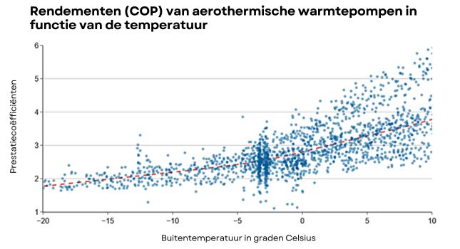 Omdat temperaturen van -20°C in België zelden voorkomen, kunnen we stellen dat de COP van warmtepompen in België bijna altijd hoger dan 2 zal zijn.