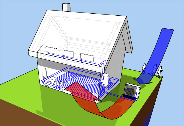 De lucht-waterwarmtepompen halen warmte uit de buitenlucht via een wisselaar gevuld met koelvloeistof. De extra warmte die de pomp op deze basis produceert, wordt via het water van de centrale verwarming of de vloerverwarming aan de woning afgegeven.
