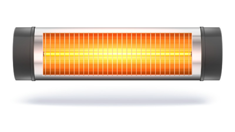 De radiator bestaat uit halogeen- of kwartsbuizen die op een paneel zijn bevestigd en licht en warmte verspreiden (infraroodstraling).