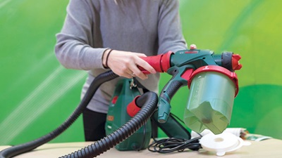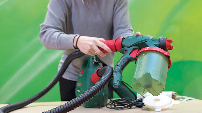 Het toestel start veelbelovend, maar veroorzaakt al snel vermoeide armen. Je moet meerdere lagen aanbrengen voor een dekkend resultaat. Ook het schoonmaken is omslachtig. Enkel geschikt voor kleine afwerkingsklusjes.