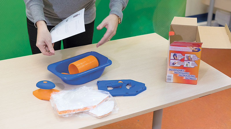 Het verfkussen (paint pad), dat er wat speelgoedachtig uitziet, bevestigt de oude wijsheid dat goedkoop vaak duurkoop is. Het resultaat is zo ongelijkmatig dat je vaak meerdere keren over dezelfde plek moet gaan, zonder ooit echt een perfect eindresultaat te krijgen. Omdat het reservoir klein is, moet je het vaak bijvullen. Wel is het systeem eenvoudig in gebruik. Geschikt voor kleine, gladde oppervlakken.