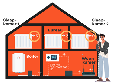 1. Slimme radiatorknoppen met een gewone thermostaat