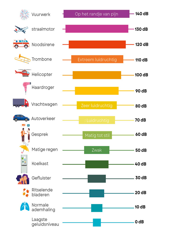Ondanks alle inspanningen van de fabrikanten maken de warmtepomp en het ventilatiesysteem van de warmtepompboiler geluid. Tijdens het gebruik bevestigden onze tests de door de fabrikanten opgegeven waarden, met een gemiddelde voor alle toestellen van 53 dB(A). Dit geluidsniveau is vergelijkbaar met dat van een grote koelkast of een rustig gesprek in een restaurant. Zie hieronder de afbeelding van de decibelschaal.