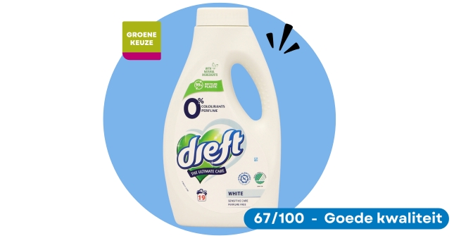 Terug naar bovenIn onze test hebben drie wasmiddelen ons Groene keuze-label behaald: